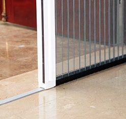 Có ray dưới là 1 thanh nhôm, có nhiệm vụ định vị cho lưới chạy rất mỏng có độ dày chỉ 2mm, không gây cản trở việc đi lại và vệ sinh sàn nhà, thích hợp lắp ở lối đi.