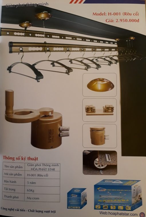 Giàn phơi thông minh H-001 là sản phẩm cao cấp được sản xuất bằng công nghệ mới trên dây truyền hiện đại tại Nhật bản được công ty Hòa Phát Star nhập khẩu chính hãng